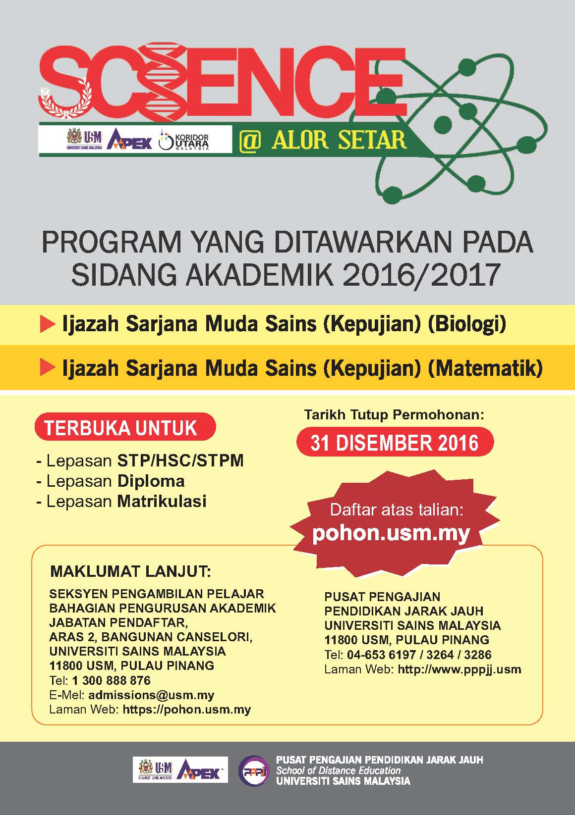 Unit Pengambilan Pelajar Bahagian Pengurusan Akademik USM tidak bertanggungjawab ke atas apa-apa kehilangan atau kerugian yang disebabkan oleh penggunaan mana-mana maklumat yang diperolehi dari laman web ini. Ini bermakna pengajar Pemberi Pendidikan Tinggi PPT yang menawarkan program TVET juga perlu ada certification of teaching competency. Universiti Pendidikan Sultan Idris 35900 Tanjong Malim Perak MALAYSIA 60 - 450 6000.